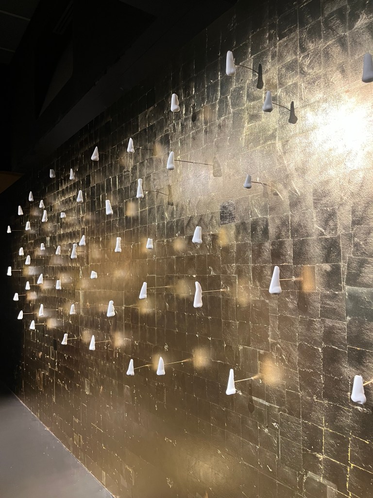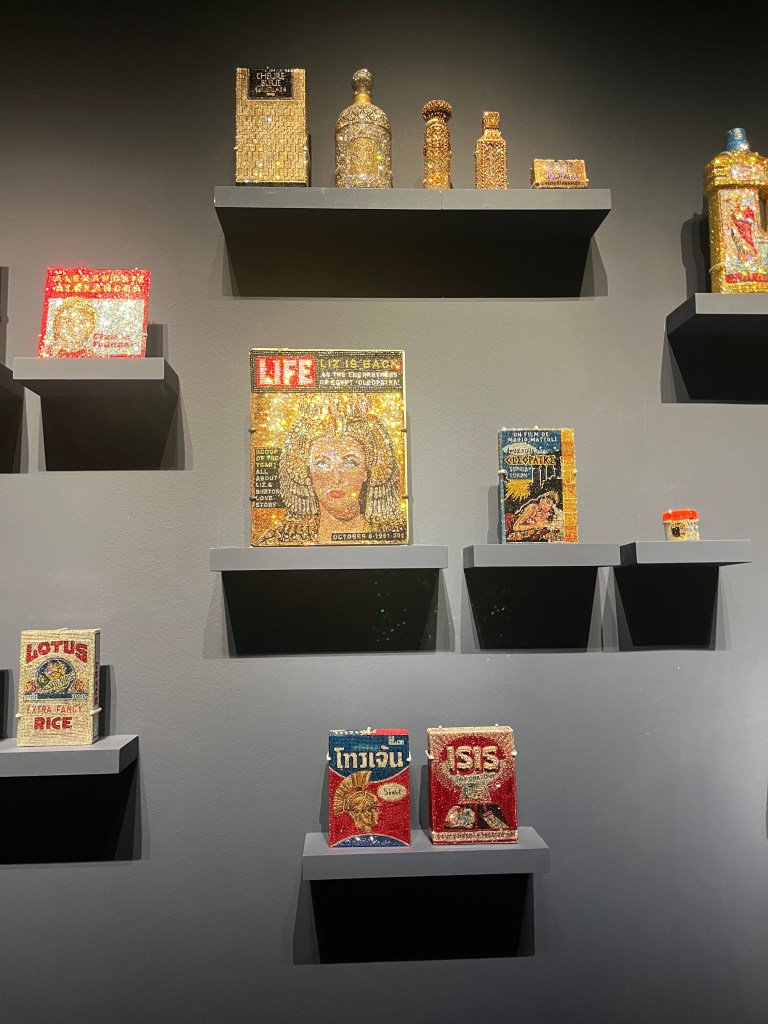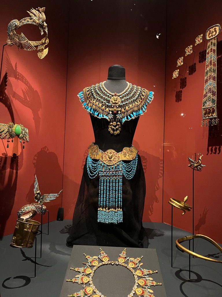 Parmi les temps forts de la visite, j’ai été particulièrement fascinée par les somptueux costumes inspirés de Cléopâtre. Certains ont été portés pour le cinéma, d’autres imaginés par de grands noms de la mode comme John Galliano. On découvre également des éléments de décor créés par Gianni Versace pour l’opéra Cléopâtre de 1989 — un moment fort, à la croisée des arts.